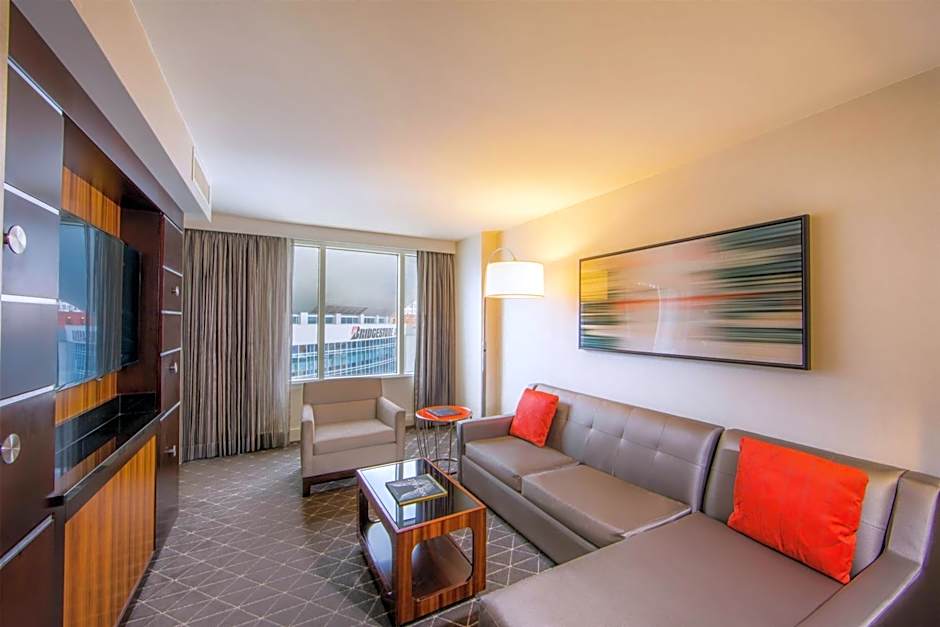 A separate area with a sofa bed is featured in this one-bedroom suite. A 46" flat-screen TV is offered.